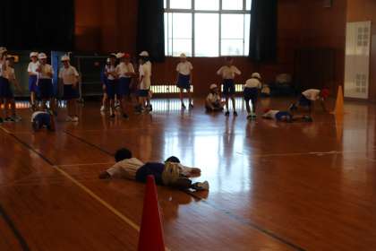 体ほぐしの運動をたくさんやっていました。