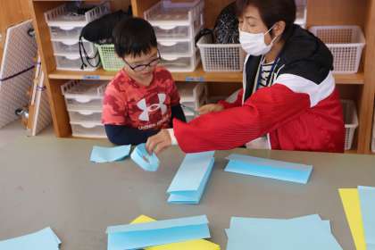 2限、ひかり学級中学年は、算数でかけ算の筆算の練習と図工をしていました。