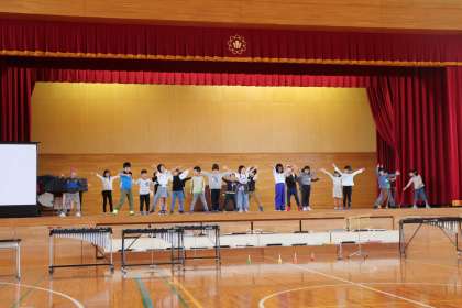 5限、1年生は学習発表会のステージ練習。