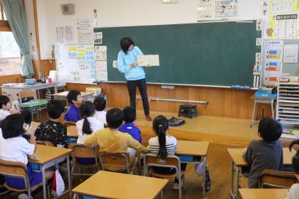 1年生は、読み聞かせボランティアの羽吹様から「まほうのわくわくおにぎり」「ぷんぷんおばけ」を読んでいただきました。