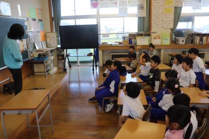 児童は、よい姿勢で集中して聞いていました。