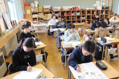おおまき小学校校舎の下はどうなっているのか?地面の下の予想図をかいて、班で発表し合っていました。