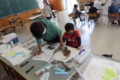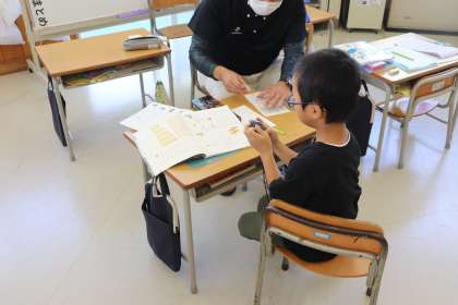 ひかり学級中学年は図工の学習、ひかり学級低学年は算数でかけ算の学習をしていました。