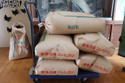 9月25日に全校で稲刈りをした学校田で育てた「おおまき小米」。