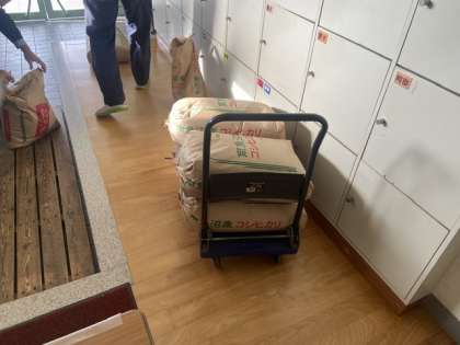 今朝、稲作サポーターの廣田様から玄米にしていただいたおおまき小米を持ってきていただきました。