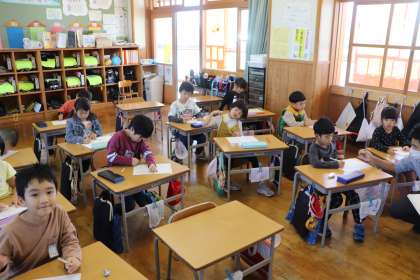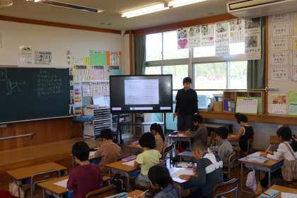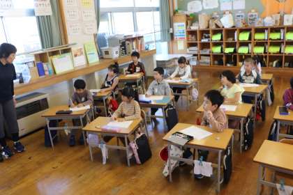 1限、1年生は算数「たしざん」の学習。