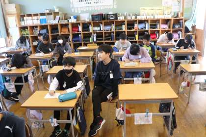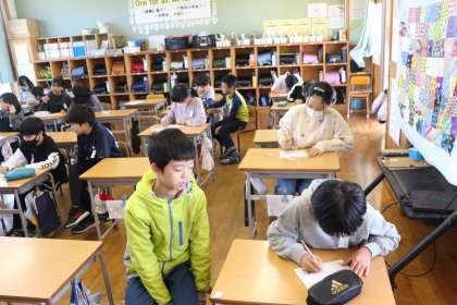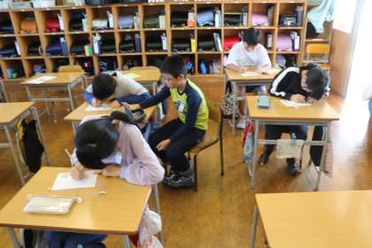 1限、5年生は、稲刈りでお世話になった方へお手紙を書いていました。