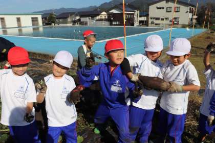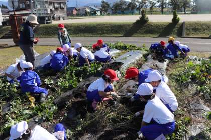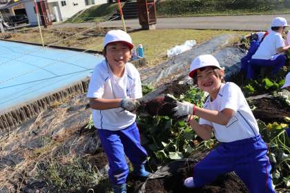 5限、1年生はさつまいもほりでした。