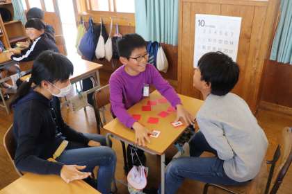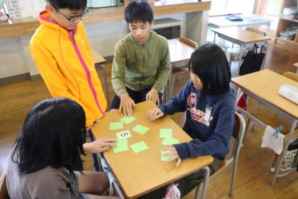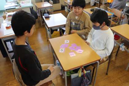 グループになって、カードを使った「通分ゲーム」をやっていました。