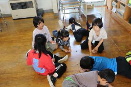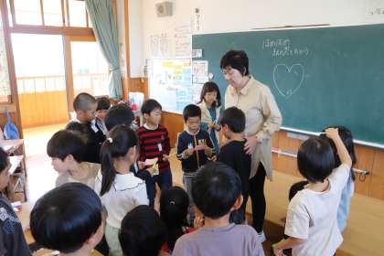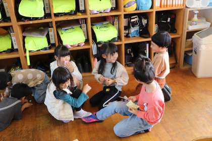 「ほめほめカード」に、仲間のよいところを記入して発表し合っていました。