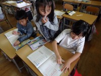 1年生は、読み聞かせボランティアの方から2冊の本を読んでいただきました。