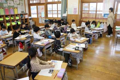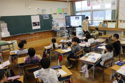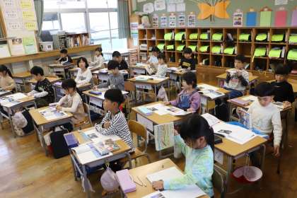 4限、1年生は国語「いろいろなふね」の学習。