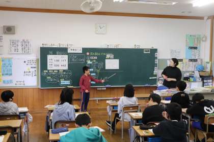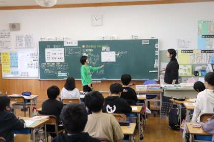 分数で考えたり、4マス関係表で考えたりと、児童は話し合っていました。