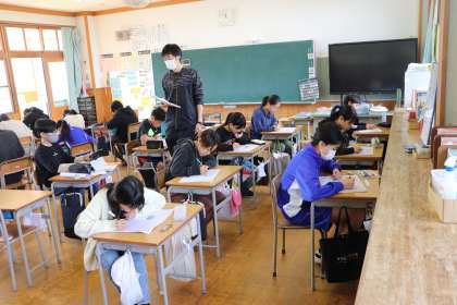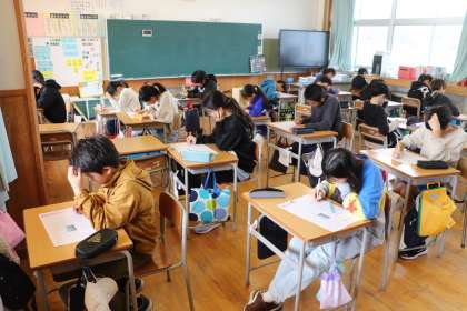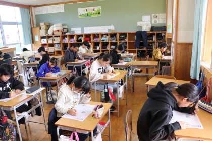 4限、6年生は国語で「町の幸福論」のテストでした。