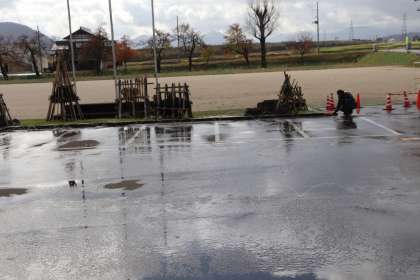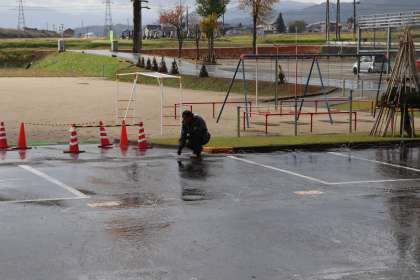 降雪、積雪シーズンに向けて、校務員さんから消雪パイプの確認作業をやっていただきました。
