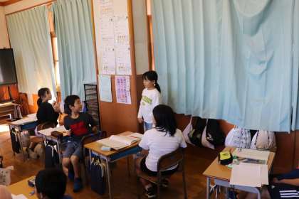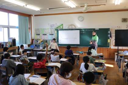 前回の水をこおらせる実験のグラフから読み取れることを、児童は次々と発言していきました。