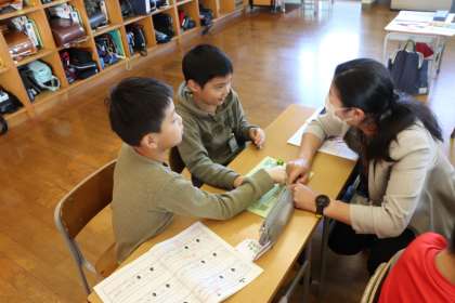 2限、3年生は国際科で「音の足し算すごろく“Blending Sugoroku”」をやっていました。