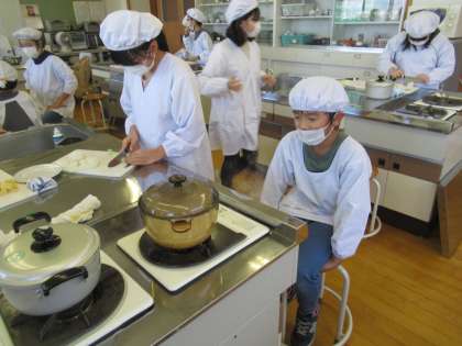 昨日の5,6限の5年家庭科「ご飯とみそ汁」の調理実習の様子です。