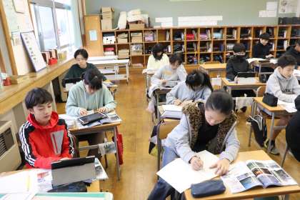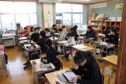 教科書に載っていた火山の噴火や、東日本大震災についてiPadで調べました。