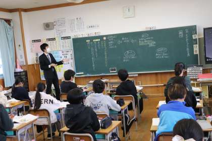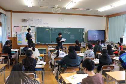 4限、6年生は道徳「おばあちゃんの指定席」の学習。