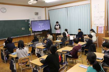 5限、4年生は学活で「すいみんとメディア時間について」の学習でした。