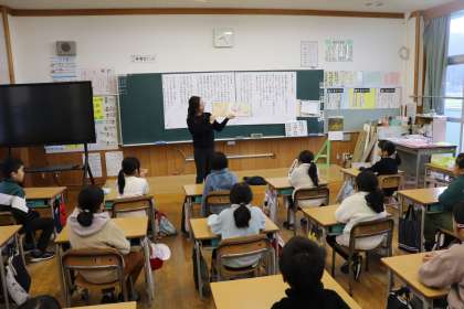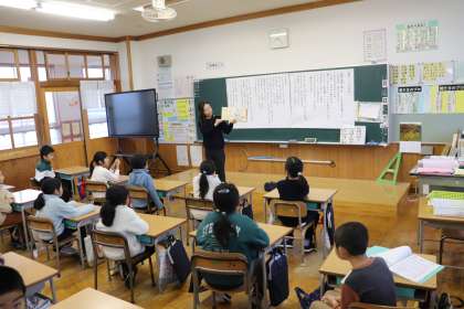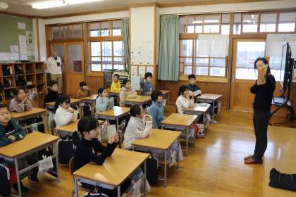 読み聞かせボランティアの方から、「くれよんのくろくん」と「くじらだ!」の2冊を読んでいただきました。