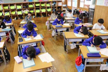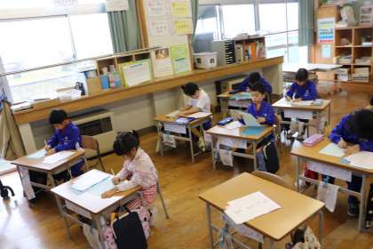 2限、1年生は書写の学習。