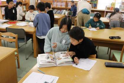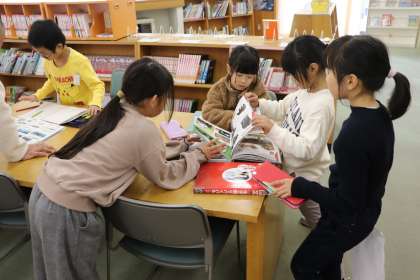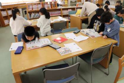 図書室で、自分が調べたい動物の本を探して読んでいました。