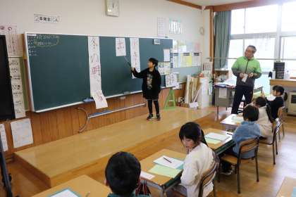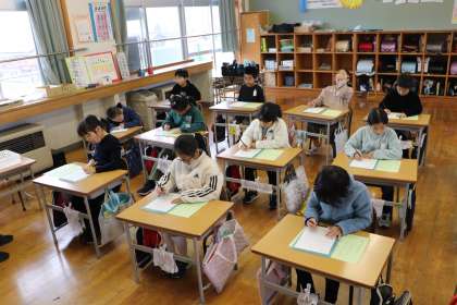 4限、2年生は書写で書き初め練習。