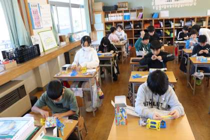 電磁石の実験をするため、「電池ボックス」「スイッチ」「方位磁針」を製作していました。