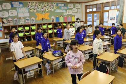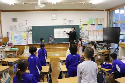 金曜日の朝は、どの教室も市歌を歌っています。