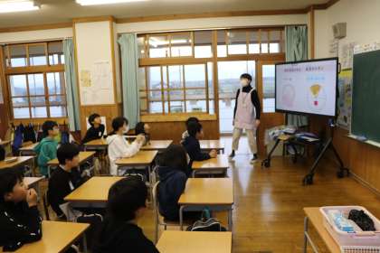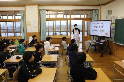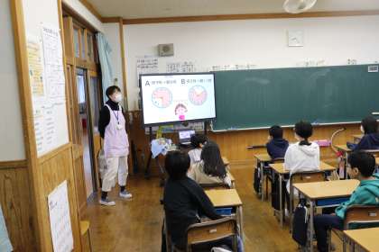朝、5年生は、八海健康weekに向けての養護教諭による「睡眠のお話」がありました。