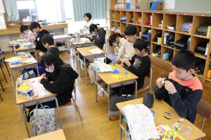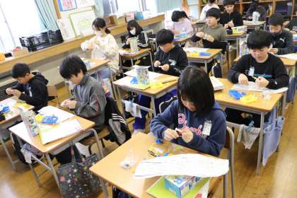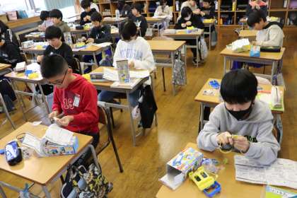 すぐにできる児童もいれば、エナメル線が絡まって苦戦している児童もいました。