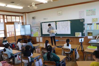 児童は、よい姿勢で集中して聞いていました。