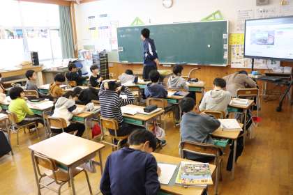 6限、3年生は社会で「わたしたちの市の歩み」の学習。