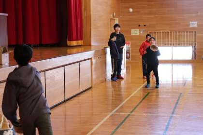 そして、代表児童6人が寄付していただいたグローブでキャッチボールをしました。