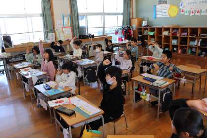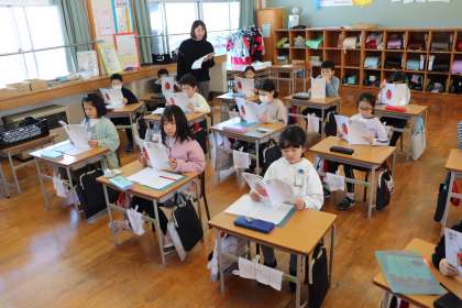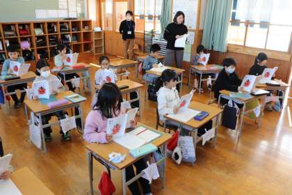 4限、2年生は国語「かさこじぞう」の学習。