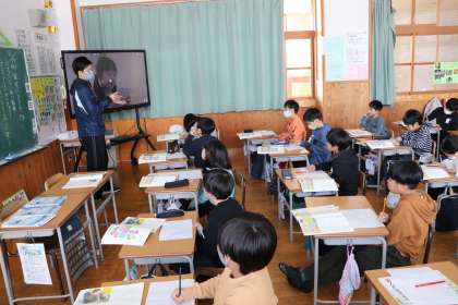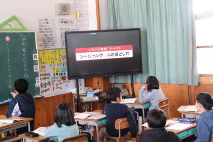 5限、3年生は道徳で「家のパソコンで」の学習。
