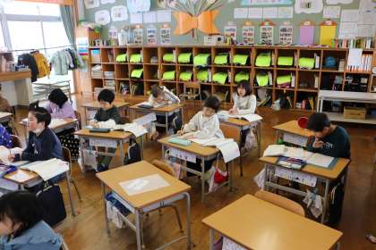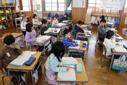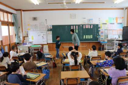 1限、1年生は国語「ことばをあつめよう」の学習。