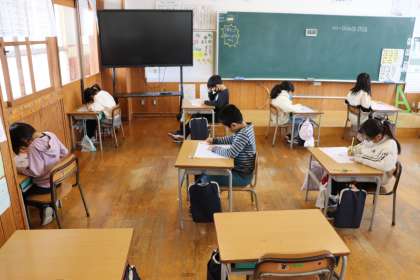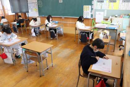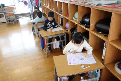 1限、2年生は国語で「この人をしょうかいします」のテストでした。