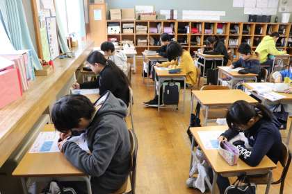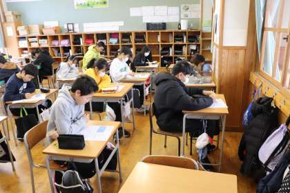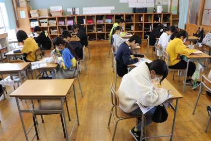 1限、6年生は理科「電気と私たちの生活」のテストでした。