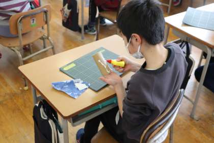 5限、2年生は六送会で6年生に贈るものに作り始めていました。