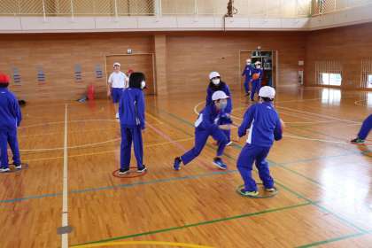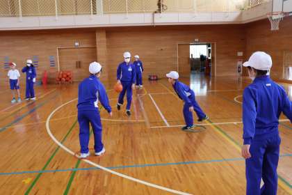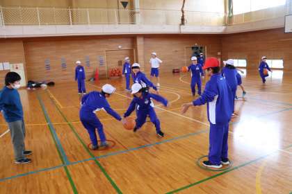 ディフェンスをよけながらドリブルの練習をやっていました。