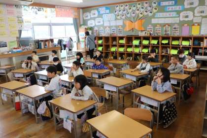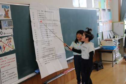 5限、1年生は学活で「六そう会にむけて」の活動。