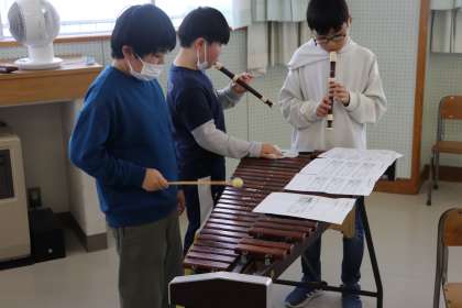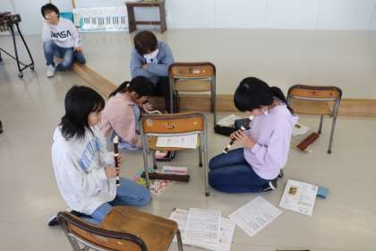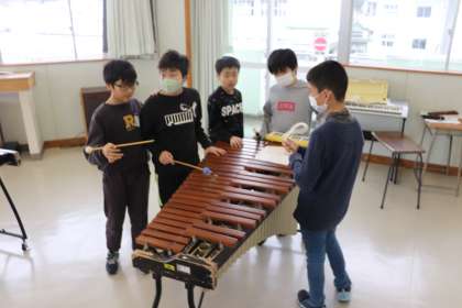 個人が考えた旋律をつなげてどんな感じになるのかを、様々な楽器で確かめていました。