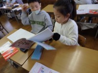 1限、1年生は国語「一年かんをふりかえろう」の学習。