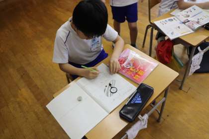 虫めがねや定規を使いながら詳しく観察していました。