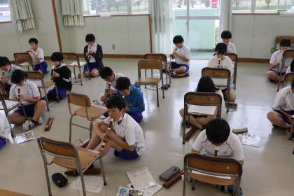 5限、6年生は音楽「ラバーズコンチェルト」のリコーダー練習。