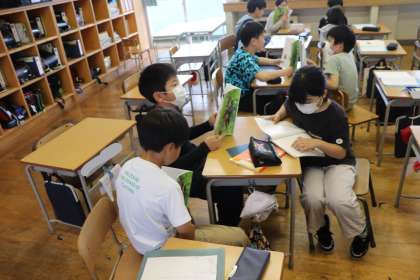 4限、4年生は国語「ヤドカリとイソギンチャク」の学習。