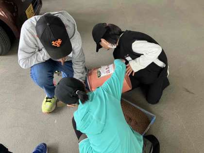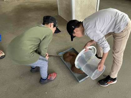 稲作サポーター島田様の指導の下、児童は丁寧に種まきをしていました。